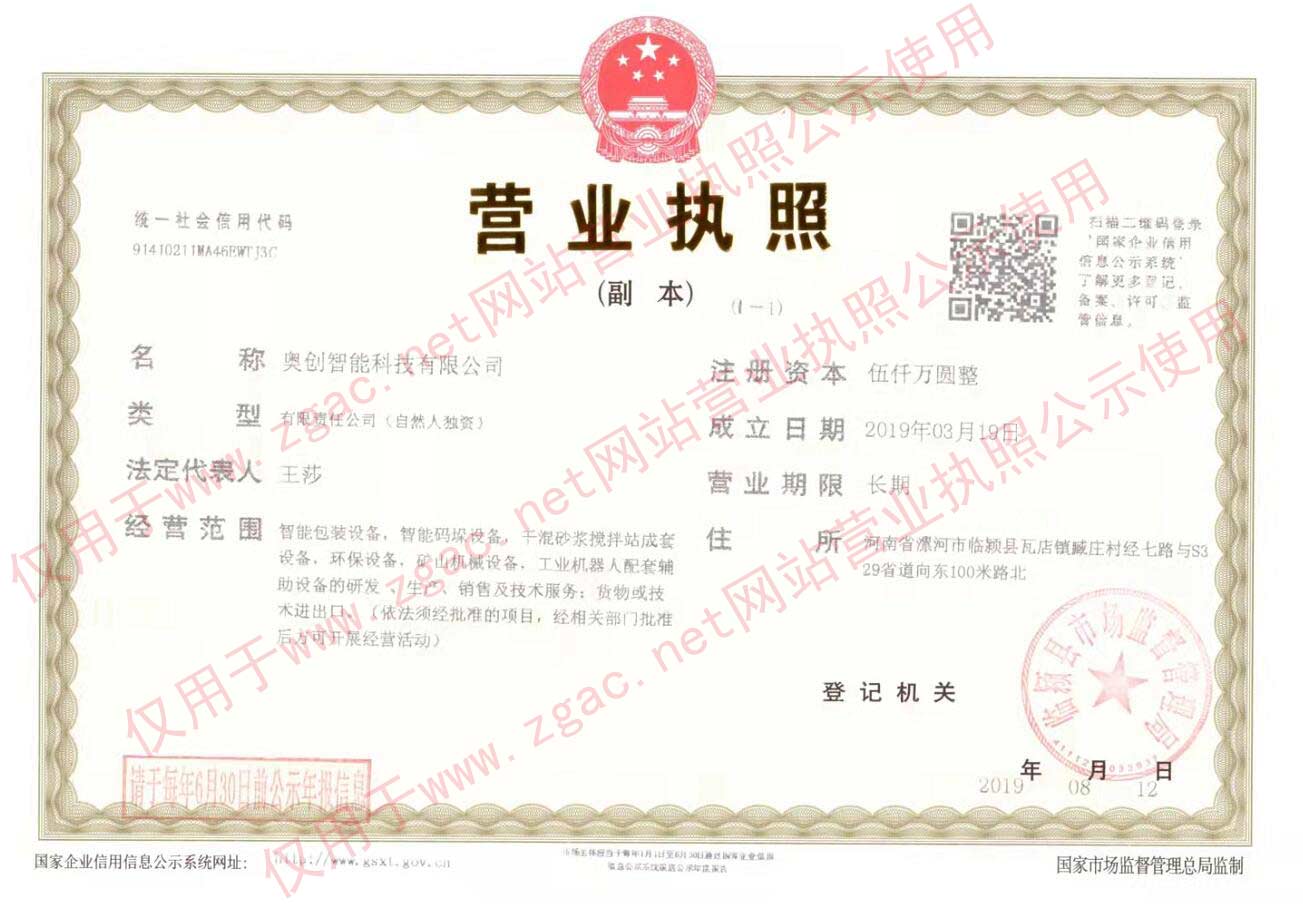 版权所有:奥创智能科技有限公司 豫ICP备20008732号-2 营业执照公示